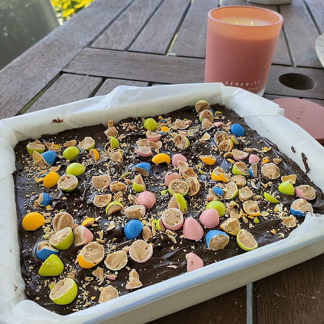 This uncooked slice is great because it's simple enough for even the youngest budding cook to have a go! Similar to a chocolate fudge slice but I have substituted organic carob powder instead of cocoa and I've added walnuts (just like my Nanna used to make) :)